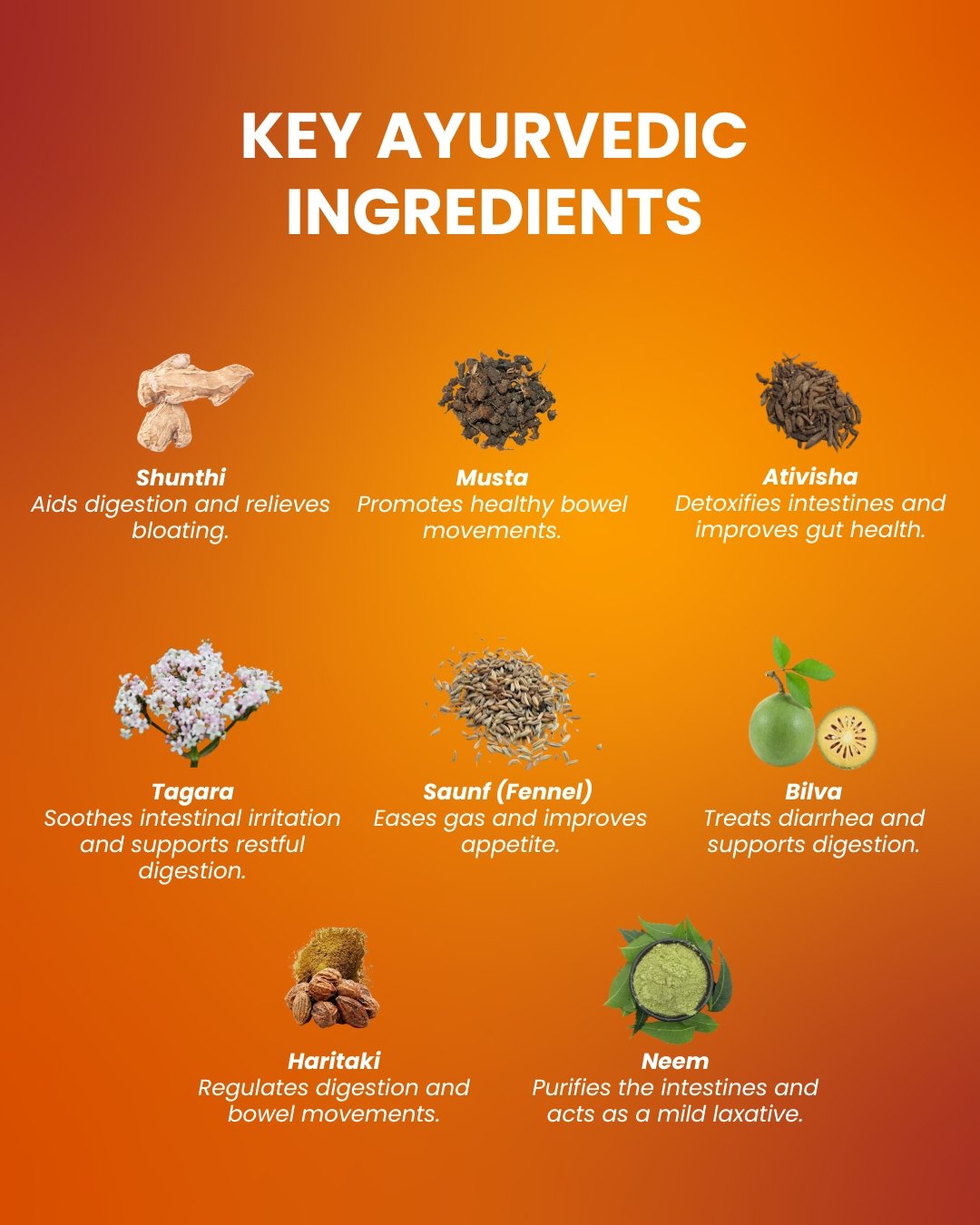 Is useful for regulating bowel movements, digestive, health, eases IBS discomfort & stress, boosts nutrient absorption.helps in diarrhoea & dysentery.